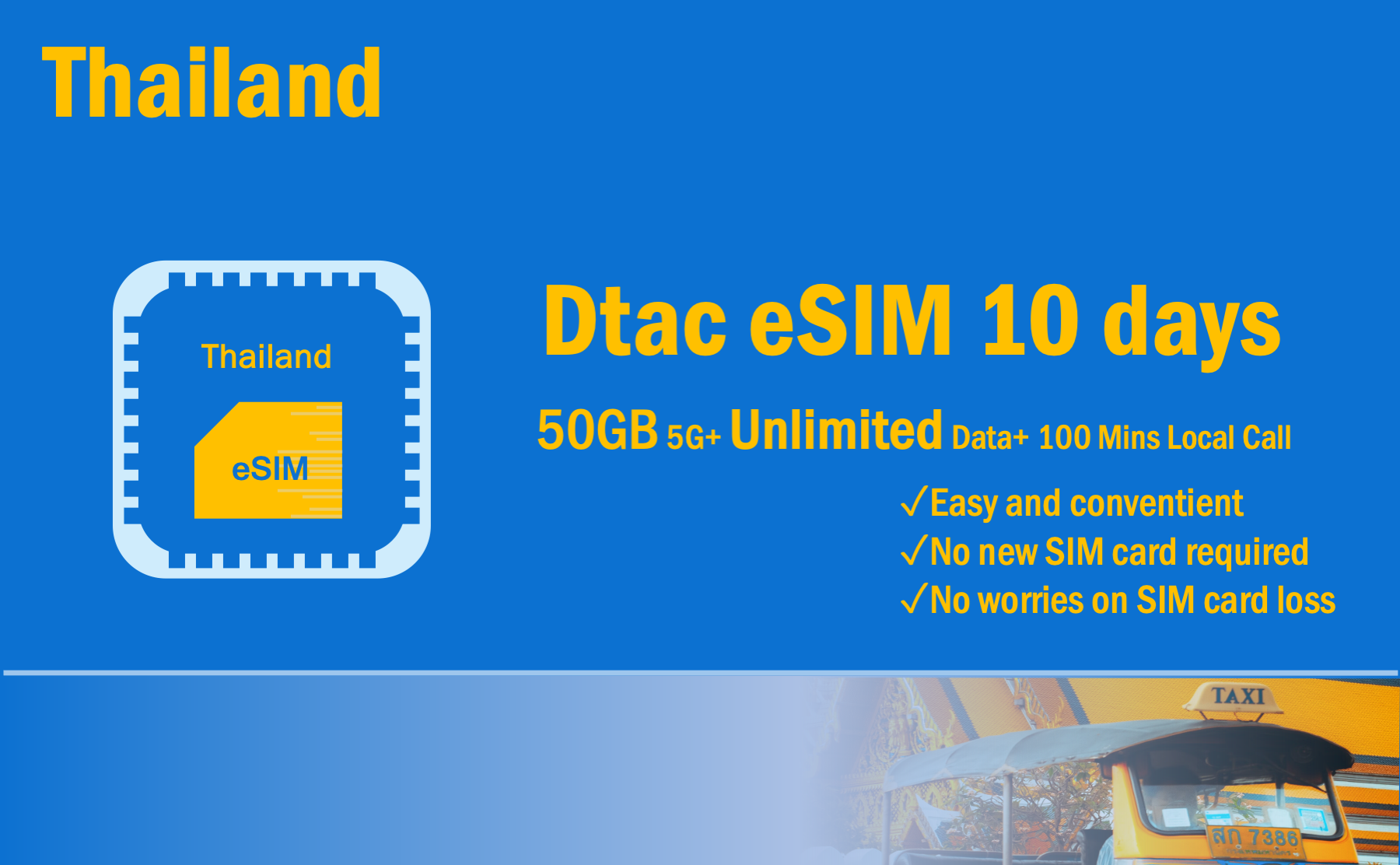 DTAC 349THB 10Days 50GB 4G+Unlimited Data+Call